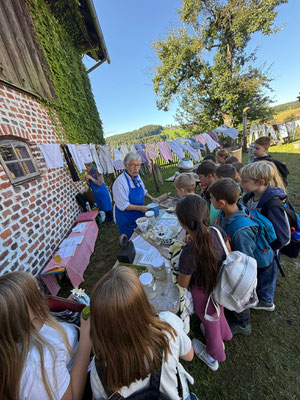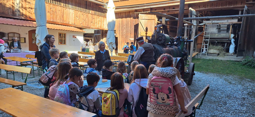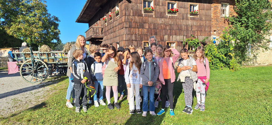 Am 18. September machten die Klassen 3a und 3b einen spannenden Ausflug zum Stehrerhof in Neukirchen an der Vöckla. Auf dem alten Bauernhof konnten wir erleben, wie die Menschen früher gelebt und gearbeitet haben. Besonders aufregend war es, selbst handwerkliche Tätigkeiten auszuprobieren. Zum Beispiel Wäsche waschen wie in alten Zeiten! Außerdem lernten wir altes Kunsthandwerk kennen: Schmieden, Drechseln, Filzen, Weben, Spinnen und Knüpfen. Auch die alten Traktoren waren beeindruckend und haben viele begeistert. Zum Abschluss gab es noch köstliche Bauernkrapfen. Ein süßer Höhepunkt nach einem erlebnisreichen Tag!
